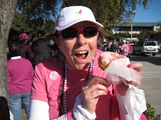Spectators — oh my — I felt like a Homecoming Queen – as the people of the community and supporters of the walkers lined the streets – clapping, cheering, and thanking us for walking. There were families,women survivors, neighbors in yards all offering something to us as we passed by. A stick of licorice, jolly rancher, kleenex, cold water, high 5’s or kind words of encouragement. These were All Strangers — Why would they be so kind? Their presence and generosity was medicinal! I could not have imagined what sweet relief something like this could bring. The lift from their encouragement often got me though the next mile or so with new eyes and insight.
